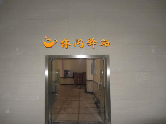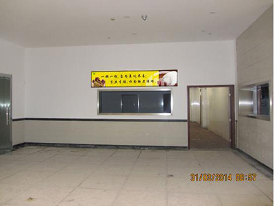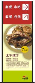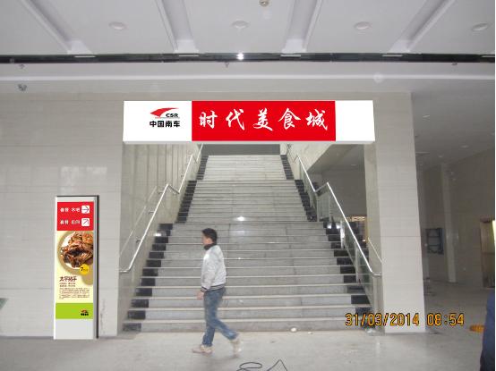 進(jìn)門正門做招牌(時(shí)代美食城),左側(cè)立式燈箱,燈箱紅色部分做指路牌,區(qū)分整個(gè)餐廳布局,起到引導(dǎo)人流的作用;下面部分做餐廳的宣傳廣告,如:新推出的菜品等。
