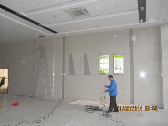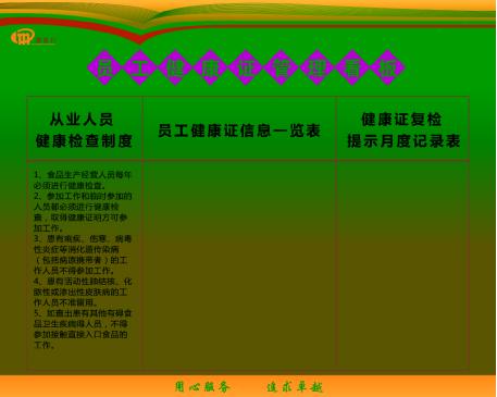 進(jìn)門右側(cè)墻壁(使用有機(jī)板粘貼公司介紹、每日農(nóng)藥檢測(cè)、員工健康證等)